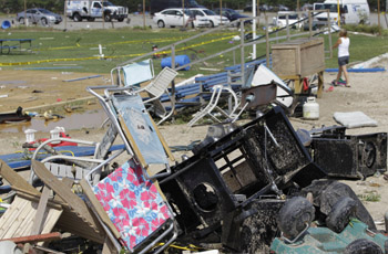 2012年9月8日,一場龍卷風(fēng)當(dāng)天襲擊了紐約市沿海地區(qū),在美國紐約皇后區(qū)的一個(gè)沖浪俱樂部,受災(zāi)地區(qū)一片狼藉。新華社/美聯(lián) |
