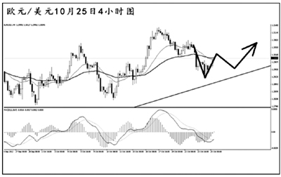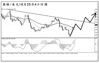 美元兌日元在突破日線圖下降趨勢線之后平穩(wěn)上沖,逐步向道氏高點(diǎn)阻力80.60挺進(jìn)。小時(shí)圖和日線圖的MACD均處于多頭動(dòng)能充盈階段,美元兌日元的上漲仍將持續(xù)。從現(xiàn)在的情況來看,日元升值的勢頭遭到了一定程度的遏制,若匯價(jià)成功突破80.60的阻力,后市還有進(jìn)一步上沖的動(dòng)力。