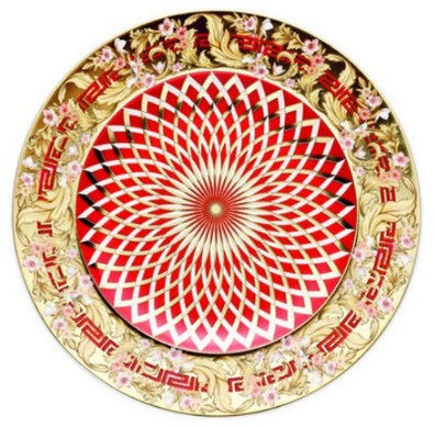 “歡樂時刻”系列延續(xù)Versace(范思哲)一貫的大膽前衛(wèi)奢華品牌風格,又融入佳節(jié)歡樂的設(shè)計元素,營造出合家歡樂的祥和氣氛。系列在鮮紅色背景上以金色、紅色或白色交錯的幾何圖形交織出一種令人驚艷的華麗視覺效果,再搭配精致細膩的巴洛克風格花環(huán)纏繞著經(jīng)典的希臘回字紋圖騰,創(chuàng)造出強烈沖突美感的藝術(shù)鮮明對比。此外,“歡樂時刻”33厘米盤底部印有不同語言的祝福文字:Have
