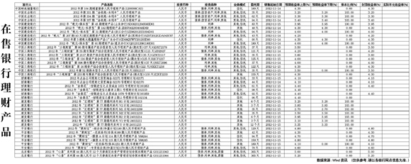 在售銀行理財(cái)產(chǎn)品[2012-11-16]