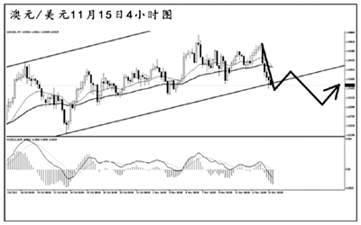 澳元兌美元仍然運行在4小時圖的上升通道之中,短線匯價大幅下落,目前正在考驗通道下沿的支撐1.0360一線。澳元最近的震蕩節(jié)奏明顯,能否跌破此通道成為后市繼續(xù)下行的關(guān)鍵。從最近的動能分析,預計澳元小幅刺破通道的希望較大,但由此展開一波單邊下跌并不容易。
