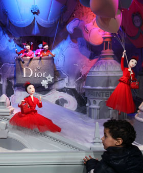 9日傍晚,天空飄著小雨,空氣中略帶初冬的寒意,但是巴黎著名的商業(yè)街區(qū)——奧斯曼大街上霓虹閃耀,行人如織,絲毫沒有受到壞天氣的影響。坐落在這里的巴黎春天百貨商店門前更是人頭攢動。當春天百貨與法國著名奢侈品品牌迪奧精心設計、準備的圣誕櫥窗在法國著名影星瑪麗昂·歌迪亞的主持下拉開帷幕時,五顏六色的彩燈、會唱會跳的布偶立刻吸引了眾多市民及游客駐足欣賞。