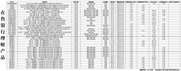 在售銀行理財(cái)產(chǎn)品[2012-11-23]