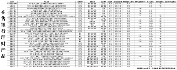 在售銀行理財(cái)產(chǎn)品[2012-11-30]