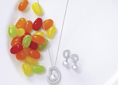 在歡天喜地的喜悅中,被糖果屋內(nèi)精致可人的藝術(shù)品吸引住,走進(jìn)天馬行空的童話天地,為MIKIMOTO(御木本)本季帶來(lái)創(chuàng)新的驚喜。以甜點(diǎn)為題,將珍貴的真珠與鉆石幻化成華麗而甜美的點(diǎn)心,包括高貴浪漫的杯子蛋糕(Cupcakes)、永遠(yuǎn)帶給人歡樂(lè)的雷根糖(Jelly