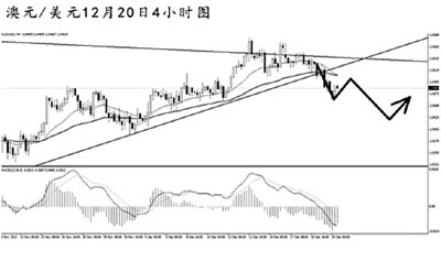 澳元兌美元持續(xù)在對(duì)大級(jí)別收斂形態(tài)的上沿進(jìn)行沖擊,但始終未能有效升破。最近一段時(shí)間,商品貨幣的走勢(shì)明顯要弱于歐系貨幣,澳元短線小幅下調(diào),已經(jīng)將最近的一條上升趨勢(shì)線跌破。4小時(shí)圖MACD顯示空頭動(dòng)能充盈,預(yù)計(jì)后市澳元仍有進(jìn)一步下行的需求,可繼續(xù)以謹(jǐn)慎看空澳元為主。