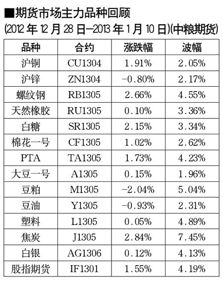 期貨市場(chǎng)主力品種回顧[2012.12.28-2013.1.10]