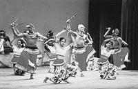 舞臺(tái)上的演出接近尾聲時(shí),阿迪又拉著我提前走出大棚,在門外露天劇場的水泥看臺(tái)上找了個(gè)好位置。在這里上演的節(jié)目更精彩。男演員赤著腳,邊舞邊走過一片用火燒熱的碎石。每次通過滾燙的石子路時(shí),還把一大把火絨撒到腳下,引起一團(tuán)大火,把整個(gè)人包在當(dāng)中。每看到這驚險(xiǎn)的場面,觀眾便爆發(fā)出一陣尖叫聲,接著是熱烈的掌聲。只有阿迪不動(dòng)聲色地喝著手里的飲料,估計(jì)這節(jié)目他已經(jīng)看了無數(shù)次了。