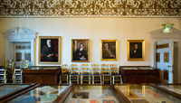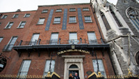 只是對于我,飲酒與文學(xué)似乎不能兼得。這天下午由于在健力士啤酒廠耽擱了些時間,到作家博物館(Dublin Writers Museum)的時候已經(jīng)臨近關(guān)門時間了,頗有些懊惱,看來只能走馬觀花一游了。這是一棟位于Parnell廣場上臨街的磚紅色老建筑,喬治亞風(fēng)格的大樓看上去重建過,里面有三層,進(jìn)去后發(fā)現(xiàn)陳設(shè)還是上個世紀(jì)的風(fēng)格,經(jīng)營手法也頗為陳舊,不過是一些圖片書籍資料和舊物件,然而這又有什么關(guān)系呢?玻璃柜中古老的紙張似乎還散發(fā)著墨香,文字的魅力足以彌補(bǔ)任何形式的缺憾。