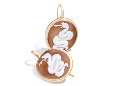 2013年正值中國蛇年,POMELLATO寶曼蘭朵Eva系列運用西方藝術(shù)中集繪畫和雕刻之大成的浮雕技法,在寶石上精雕細琢出中國十二生肖之一——蛇的玲瓏形象,以浮雕珠寶獻禮蛇年。神秘、靈氣、力量兼而有之的珠寶佳作躍動指間或蕩漾耳畔,極具新穎獨到之韻味。寶曼蘭朵的工匠們在尊重貝殼原狀的基礎(chǔ)上,在這些厚度僅為1至2毫米的原料上發(fā)揮純熟的手藝和才氣,雕刻出活靈活現(xiàn)的蛇。
