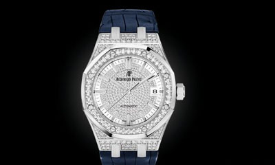 Piguet)皇家橡樹系列女裝自動上鏈腕表,搭配白金表殼與表盤,共鑲嵌152顆明亮式切割美鉆,意在契合女性獨特的品味。
