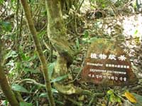在雨林區(qū),所到之處盡是奇形怪狀的植物,科研人員和景區(qū)規(guī)劃者們細心地為雨林中的花草樹木或立或掛地制作了寫有植物中文名和拉丁文名的介紹性標牌,方便游人與熱帶植物“親密接觸”。我默默地望著從來寡言的樹和花草,心想,如果時間允許,讓我系統(tǒng)地觀察、學習它們,哪怕能隨口叫出它們的名字,而非走馬觀花般一逛而過該有多好。