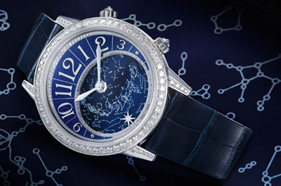 新款腕表無疑是一款完美的天象觀測儀,為了淋漓盡致地展現(xiàn)天象主題,表盤還設(shè)置了星座日歷,月份指示與星座全年對應(yīng),通過年歷來調(diào)節(jié)顯示系統(tǒng)以及時間測量。該腕表搭載Jaeger-LeCoultre