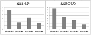 在四大期貨交易所中,中國金融期貨交易所成交金額最大,占總成交金額的44.32%,上海期貨交易所緊隨其后,占據(jù)四分之一左右市場份額。受美國干旱影響,豆類油脂品種大幅波動(dòng),市場交投活躍,大連商品交易所的成交量和成交額增幅最為迅猛,接近翻番,尤其是豆粕,成交量放大超過5倍。