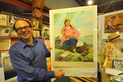 2月16日,在美國舊金山舉行的第46屆加利福尼亞國際古舊書展上,參展商亞歷山大·埃金展示中國上世紀(jì)70年代的宣傳畫《田間文化站》。