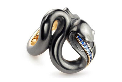 Faberge設(shè)計(jì)的靈蛇珠寶曾經(jīng)帶給過我們無限的驚喜和美好回憶。而“蛇”圖案本身也是一個(gè)在珠寶領(lǐng)域中被反復(fù)使用和重復(fù)出現(xiàn)的設(shè)計(jì)主題。這次Faberge帶來的充滿異國情調(diào)的全新靈蛇系列珠寶,其創(chuàng)作靈感原是來自于俄國民間的一個(gè)童話故事,故事講述的是一位姑娘愛上并且嫁給了一個(gè)可以變成人形的靈蛇童話。而這個(gè)充滿戲劇性的高級雕刻珠寶,是由黃金,白金和純銀制成,在靈蛇蜿蜒的身軀上更是附上了藍(lán)寶石的華麗鑲嵌,并且畫龍點(diǎn)睛的加入了蛋白石的元素,讓整個(gè)珠寶呈現(xiàn)出充滿靈動感的現(xiàn)代氣息。