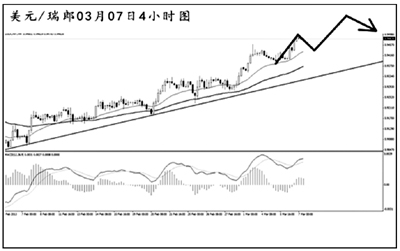 美元兌瑞郎在經(jīng)過了近一周的寬幅震蕩之后,最近5個交易日有3天收出實體大陽線,顯示出匯價進一步?jīng)_高的欲望。4小時圖上看,匯價逐步遠(yuǎn)離上升趨勢線,斜率加大。上方的下一道阻力在0.9510,預(yù)計小幅調(diào)整之后將向此位置發(fā)起沖擊,若升破,將打開進一步的上行空間。
