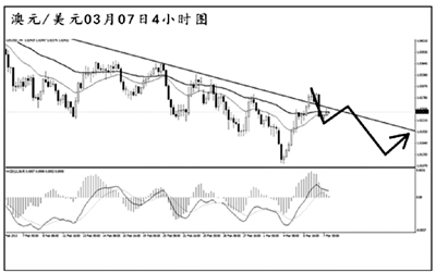 英鎊兌美元的弱勢仍在延續(xù),匯價在跌破大級別1.5230的支撐之后,有下跌加速的跡象。4小時圖下跌斜率有所放緩,短線MACD繼續(xù)產(chǎn)生明顯的底背離信號,目前需重點關(guān)注下降趨勢線的阻力1.5100一線,英鎊若想展開強力的上調(diào),必須有效突破此線。預(yù)計后市英鎊延續(xù)弱勢的概率偏大。