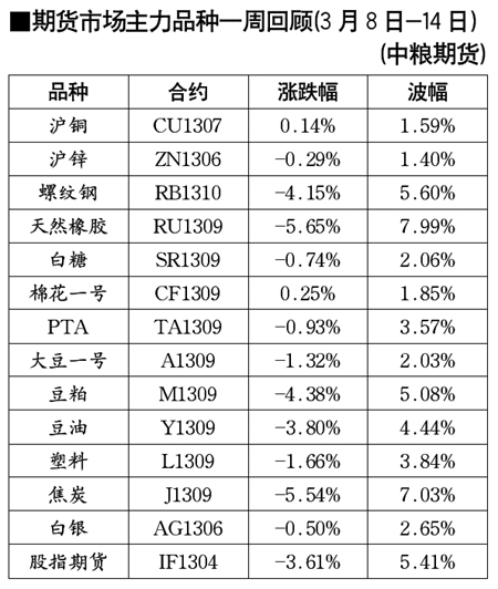 期貨市場(chǎng)主力品種一周回顧[3月8日-14日]