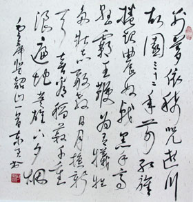 何東君為新華社原副社長(zhǎng),曾先后工作于甘肅、內(nèi)蒙古、四川,西部的風(fēng)情鑄造了他干練豪放的性格,為其書法的審美取向融入了心靈的契合。他于書法的切入,從一開始就把視角觸到了善于抒情達(dá)意的草書。他的作品飄逸瀟灑,大氣磅礴。近年來,他加強(qiáng)臨帖,研習(xí)行楷,使草書的線條和結(jié)構(gòu)更具質(zhì)感和美感,同時(shí)更加注重將國學(xué)修養(yǎng)和人格精神在書法作品中的再現(xiàn)。