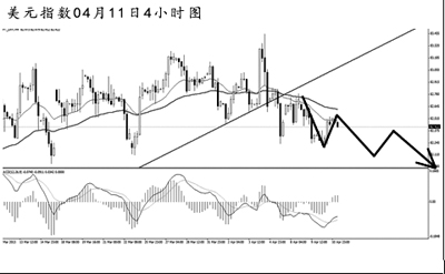 美元指數(shù)創(chuàng)出短線新高之后持續(xù)下挫,已經(jīng)將大級別的上升趨勢線跌破。雖然日線圖均線系統(tǒng)仍然保持依托的狀態(tài),但美元指數(shù)的上沖動(dòng)能明顯不足。4小時(shí)圖持續(xù)發(fā)生MACD的頂背離信號,預(yù)計(jì)美元指數(shù)仍有再度下落的風(fēng)險(xiǎn)。短線關(guān)注82.00一線支撐,若價(jià)格跌破此位置,將打開進(jìn)一步的下行空間。