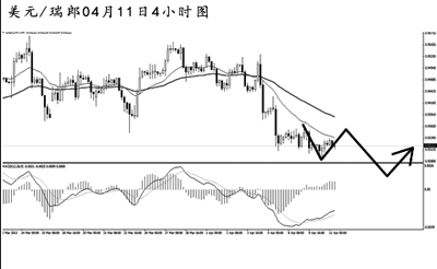 美元兌瑞郎未能創(chuàng)出日線圖新高,短線匯價持續(xù)下落,將大級別均線系統(tǒng)的依托位跌破。4小時圖上看,由于匯價運行到了0.9350下方,后市繼續(xù)下行的風險加大。盡管短線的次級趨勢調整不佳,但由于下跌空間廣闊,預計匯價將進一步走弱,理想目標在0.9050附近。