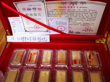 今年2月,當(dāng)王安帶著她收藏的黃金紀(jì)念幣到甘肅省金銀貴金屬珠寶玉石飾品質(zhì)量監(jiān)督檢驗(yàn)站做鑒定時(shí),才發(fā)現(xiàn)自己收藏的這些打著由“中國金幣總公司”、“上海造幣廠”等發(fā)行的“神九紀(jì)念金幣”、“2013年蛇年金條”等只是一堆廢銅爛鐵,“根本就不含金,先后被騙了10萬多元”。隨后她向蘭州市公安局刑警支隊(duì)報(bào)案。
