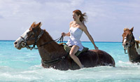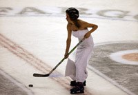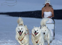 照片中,珍妮弗或是穿著婚紗體驗(yàn)懸崖跳傘,或是坐著狗拉雪橇,或是手拿一杯葡萄酒面對(duì)埃菲爾鐵塔,或是面對(duì)中國麗江的水車沉思,甚至腳穿球鞋、在NBA球場上定點(diǎn)投籃……