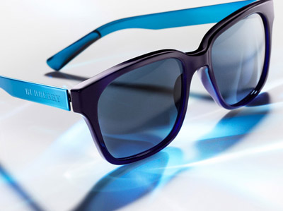雙色調(diào)板材款式包括男士方框款型和女士圓形貓眼款型,采用反光或同色系鏡片。