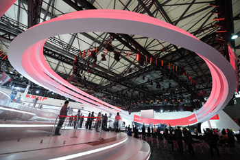 本次車展,各展臺(tái)的創(chuàng)新設(shè)計(jì)成為一大看點(diǎn)。經(jīng)過激烈的角逐,NISSAN展臺(tái)摘得最佳展臺(tái)創(chuàng)意獎(jiǎng)之一。