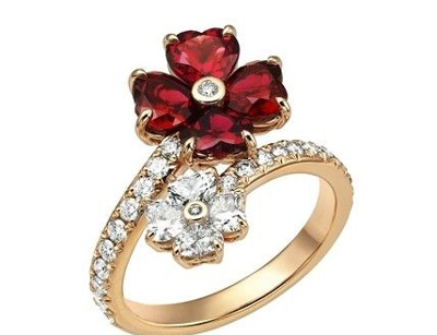 You高級珠寶系列,精致細(xì)膩,提供白金、鉆石和紫水晶及玫瑰金、鉆石和紅寶石兩個版本。該系列包括吊墜、戒指,不同款式會有一朵或兩朵的花朵。每件作品均由蕭邦高級珠寶工坊打造,珠寶大師將逐一將寶石鑲嵌在這些珠寶幸運(yùn)符的中央……