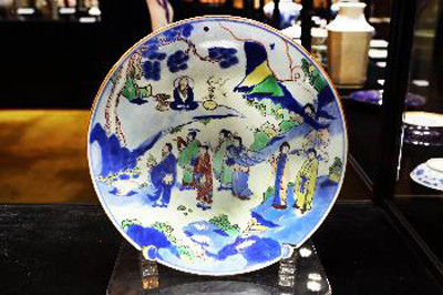 中拍國際2013春拍精品預(yù)展近日在北京舉辦。據(jù)悉,中拍國際將在京陸續(xù)推出古代玉器瓷器及中國名家書畫、中外名家油畫精品、名酒等拍賣專場。圖為拍品——“清順治青花五彩人物大盤”。
