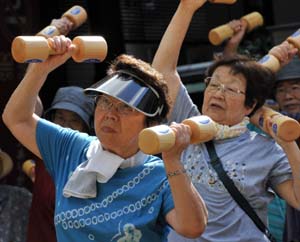 “我耳朵不好使,眼睛也看不清,渾身是病,”87歲的日本老人鎮(zhèn)元悅子(音譯)說,“但我的精神仍然年輕!