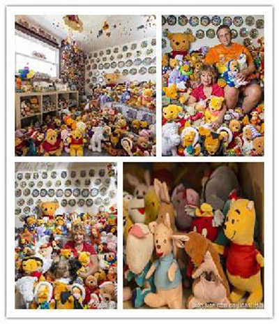 來自美國威斯康辛州的德布·霍夫曼女士今年48歲,職業(yè)是一位網(wǎng)頁設(shè)計(jì)師,然而她卻有一個(gè)與眾不同的“數(shù)據(jù)庫”,那就是充滿整整4個(gè)房間的小熊維尼玩偶及紀(jì)念品。她也因此創(chuàng)下了收集小熊維尼最多的吉尼斯世界紀(jì)錄。