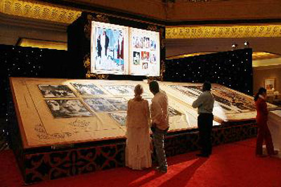 世界上最大的相冊(cè)自6月4日起在阿聯(lián)酋首都阿布扎比的王宮酒店展出。這一相冊(cè)寬5.5米,高4.5米,共18頁(yè),收藏了約210張阿聯(lián)酋已故總統(tǒng)扎耶德·阿勒納哈揚(yáng)生前出行、訪問的主要?dú)v史照片,已被“吉尼斯世界紀(jì)錄”組織認(rèn)定為世界最大相冊(cè)。為便于瀏覽,展出方在相冊(cè)前設(shè)置了電子觀摩屏,參觀者可以通過點(diǎn)擊鼠標(biāo)翻閱相冊(cè)。