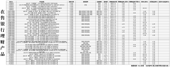 在售銀行理財(cái)產(chǎn)品[2013-07-12]