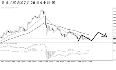 美元兌瑞郎在本周初探底反彈,4小時圖留下了一根下影線很長的錘子線,此后匯價再未能跌破0.9320的低點(diǎn)。目前匯價走勢跟隨于其他歐系貨幣的節(jié)奏,短線空頭力度逐步減弱,但若想逆轉(zhuǎn)跌勢需要暴發(fā)出一波強(qiáng)勁的上漲動能。道氏高點(diǎn)的阻力位在0.9475,升破之前,繼續(xù)保持震蕩的操作思路。