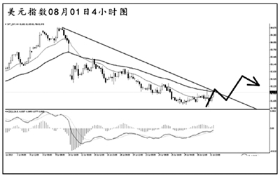 美元指數(shù)維持短線盤整的走勢,但在周中風(fēng)險事件的刺激之下發(fā)生大幅震蕩。價格再度創(chuàng)出新低,但并未能加速下行,短線美元指數(shù)重新展現(xiàn)出良好的多頭動能。4小時圖均線系統(tǒng)仍然起到強(qiáng)勁的壓制作用。周五晚上公布的非農(nóng)就業(yè)數(shù)據(jù)預(yù)計將會進(jìn)一步刺激美元的走勢,美元指數(shù)后市若想展開更為明顯的上沖,必須有效站穩(wěn)在82.15上方。