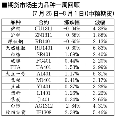 期貨市場主力品種一周回顧[7月26日-8月1日]