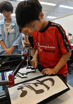 他的同學(xué)山岸敬佑(音譯)說(shuō):“感覺(jué)真棒。我只需手臂稍微用力,毛筆就開(kāi)始在紙上滑行!