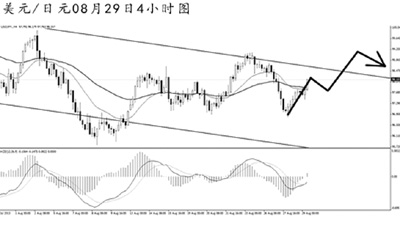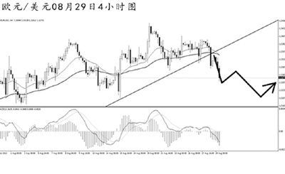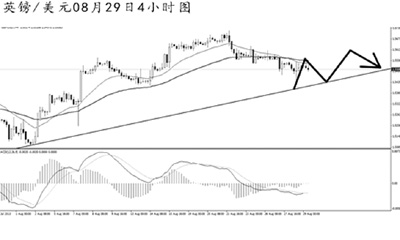 ▲歐元兌美元持續(xù)受制于日線圖1.3415的阻力,上漲力度遲遲未能再度暴發(fā)。4小時圖連續(xù)發(fā)生角度明顯的MACD頂背離信號,空頭動能逐漸加強(qiáng),目前趨勢線已被跌破,歐元仍有繼續(xù)走弱的風(fēng)險。下方強(qiáng)支撐在道氏低點(diǎn)1.3205,匯價仍有一定的下調(diào)空間。預(yù)計歐元小幅調(diào)整之后仍將以下行節(jié)奏為主。