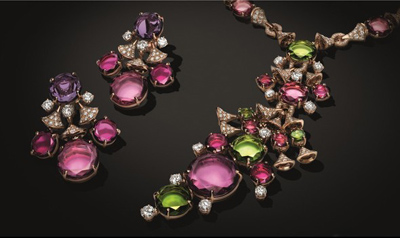 本系列首飾采用紫水晶、橄欖石與紅碧璽等珠寶,綻放喜悅的活力,將中央的小型鉆石襯托得更加璀璨奪目。這些造型精巧的珍貴珠寶以現(xiàn)代風(fēng)格重新詮釋
