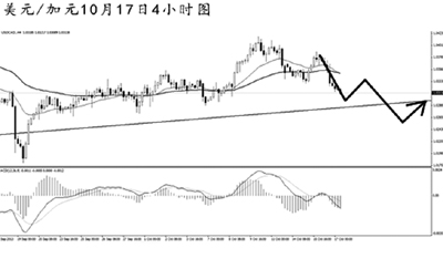 美元兌加元此前的強力上沖走勢并未能延續(xù),匯價隨即展開回落,目前再度向大級別上升趨勢線的支撐一帶發(fā)起挑戰(zhàn)。4小時圖的主趨勢已轉(zhuǎn)為向下。若順利跌破趨勢線,匯價將挑戰(zhàn)1.0180的低點支撐,但預(yù)計本輪下跌直接突破此位置的概率不高。