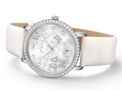 Omega(歐米)茄碟飛Prestige腕表的表面雍容典雅,設(shè)計(jì)從大自然的善與美萃取靈感,再配上條紋緞面皮革表帶,淳美造型扣人心弦。