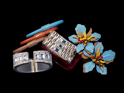 設(shè)計靈感來源于上世紀四十年代高級珠寶的創(chuàng)意和誘人魅力,Prada推出了一系列頗具現(xiàn)代感的珠寶,包括手環(huán)、手鐲、手鏈和耳飾。