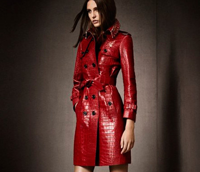 一系列的服飾全以紅和黑作主調(diào),當(dāng)中包括品牌標(biāo)志性 trench coat、晚裝、Crush bag,以及鞋履,全部均用上鱷魚皮、貂皮精制而成,盡現(xiàn)尊貴奢華。