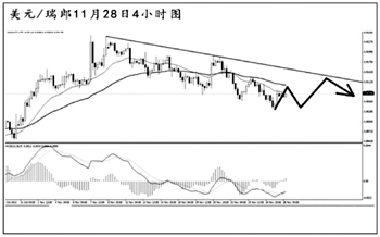 美元兌瑞郎持續(xù)震蕩下行。日線圖上看,雖然道氏高點阻力0.9175被升破,但后市匯價遲遲未能再度暴發(fā)出強勁的上沖動能。4小時圖均線系統(tǒng)保持壓制的狀態(tài),由于下方近期并沒有強勁的支撐,預(yù)計匯價仍將保持下行節(jié)奏。短線關(guān)注0.9145的阻力,只有有效升破此位置才能展開明顯的上調(diào)。