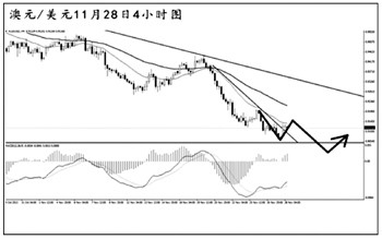澳元兌美元的下行趨勢延續(xù)了一周的時間,短線匯價小幅反彈。日線圖上看,MACD仍處于空頭動能充盈的階段,下方支撐在0.8890。4小時圖均線系統(tǒng)保持壓制的狀態(tài),匯價已經(jīng)小幅升破了最近的一條下降趨勢線,預(yù)計后市將展開進一步的上調(diào),但在升破0.9200之前,需繼續(xù)對澳元抱以看跌思路。