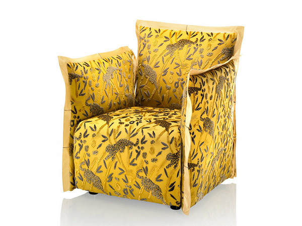 Kenzo(高田賢三)「Papillon 蝶」沙發(fā)扶手壓邊留布的設計,猶如蝴蝶展翅翻飛一般,是 Kenzo 首席設計師——高田賢三身為日裔旅法學習期間,功力熟稔能將東風西漸的中西美感巧妙地融合在作品中的哲理表現(xiàn)。 布花中如虎躍于竹林的身影,在東方黃的布匹上交織出相異卻又容洽的視覺感。椅框的厚度在視覺上十分輕薄,坐感卻十分飽滿舒適。混搭異材的留邊設計讓沙發(fā)線條活躍,整體感不過于沉重,作品使人充份體現(xiàn)在法式優(yōu)雅線條外,留下一抹和風氣息的伏筆。