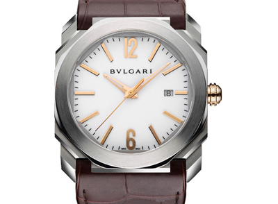 再推出一個新款,選用精鋼配玫瑰金打造,配以白色漆面表盤。精鋼與玫瑰金交錯的色彩效果,尤其突出;加上Octo大膽而經(jīng)典的設計風格,令這款腕表予人更堅實更有力量之感,特點更鮮明,一眼可辨。